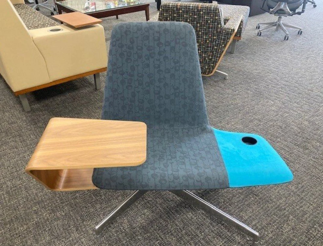 Part task seating, part lounge chair, Harbor Work Lounge enables mobility and accommodates evolving technology, while making a stylish statement wherever work gets done.. Dual worksurfaces provide easy access to work tools. An optional integrated sliding tablet offers an active workspace for a laptop or notepads while the suede upholstered seat wing holds electronics and personal items.